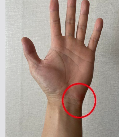 아래 사진에 표시된 부위이고 이 부위가 아프다면 삼각섬유연골복합체 손상의 가능성이 높습니다.