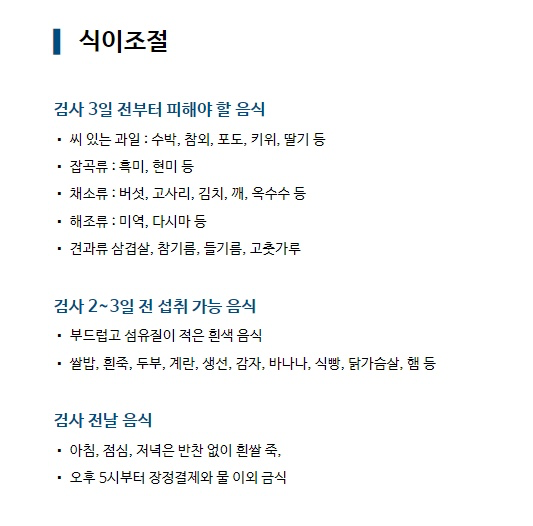 아래 그림 보시고 검사 전까지 식단 챙기시면 되겠습니다.