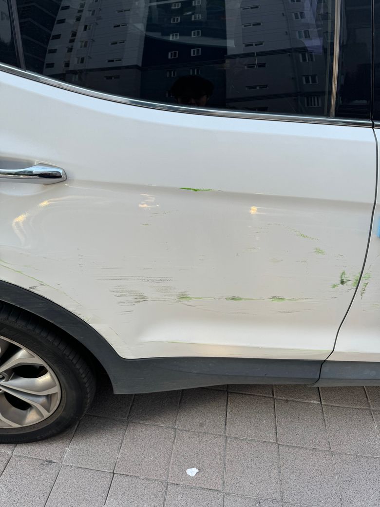 좁은 지하 주차장 들어가다가 너무 오른쪽으로 붙어서 가서 저렇게 다 긇히고 사이드미러는 깨지고.. 작살이 났습니다 ㅠㅠ 수리비가 얼마정도 나올까요 ㅠ