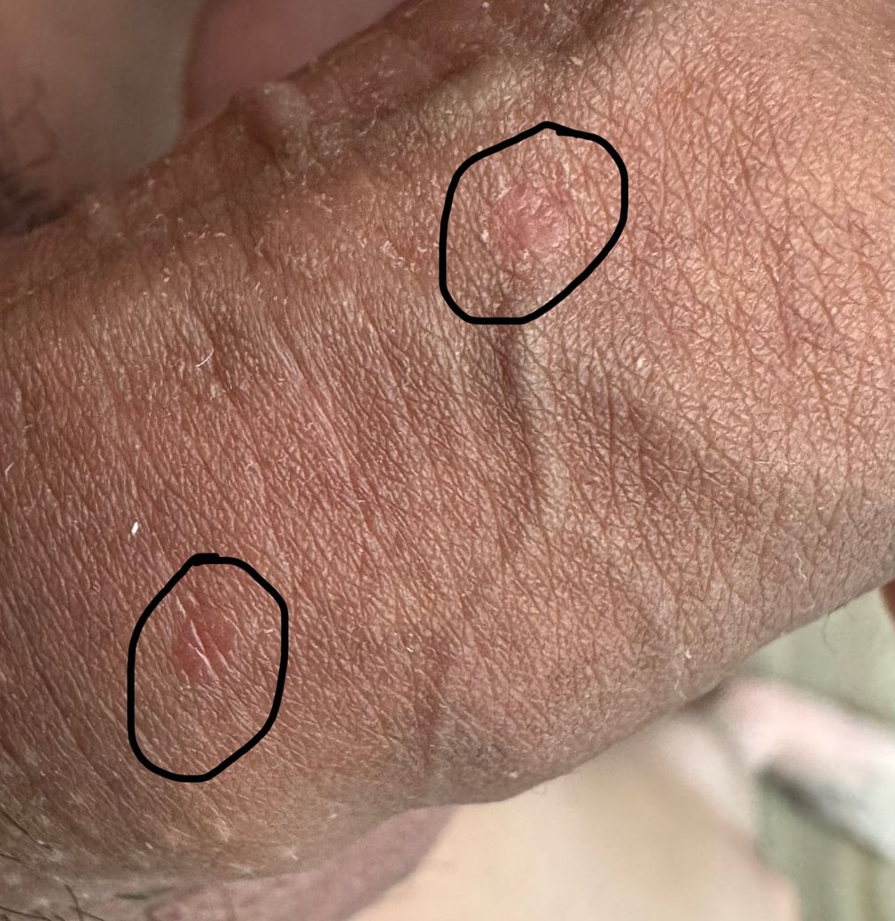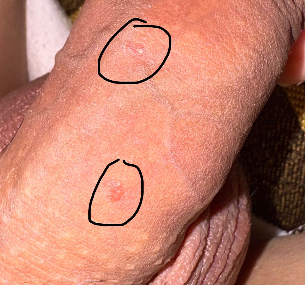 일주일 전 관계가 있었고 이틀 전 붉은 상처같은 것 2개와 약간의 진물을 발견했고 어제 하얀 각질이생겨 현재는 벗겨져 붉은 흔적만 남아있습니다 별다른 증상은 없었습니다 헤르페스인가요