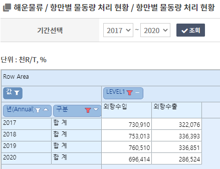 일반적으로 전 세계적으로 코로나19 대유행 이전의 수준에 비해 현재는 아직 회복되지 않은 상태입니다.우리나라의 해운 물류 물동량을 보면 2020년 수출과 수입 모두 급감하였음을 알 수 있습니다.