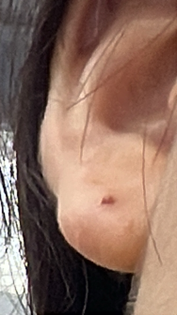 아직 염증이 남았거나 비후성 흉터로 추정되는 병변으로 보입니다.