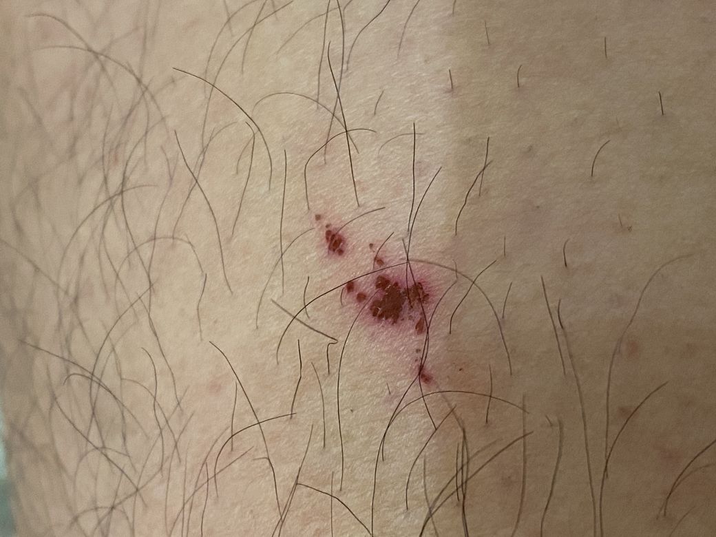 양쪽 정강이에 오밀조밀하게 벌레 물린 듯 피딱지가 생겼는데요…