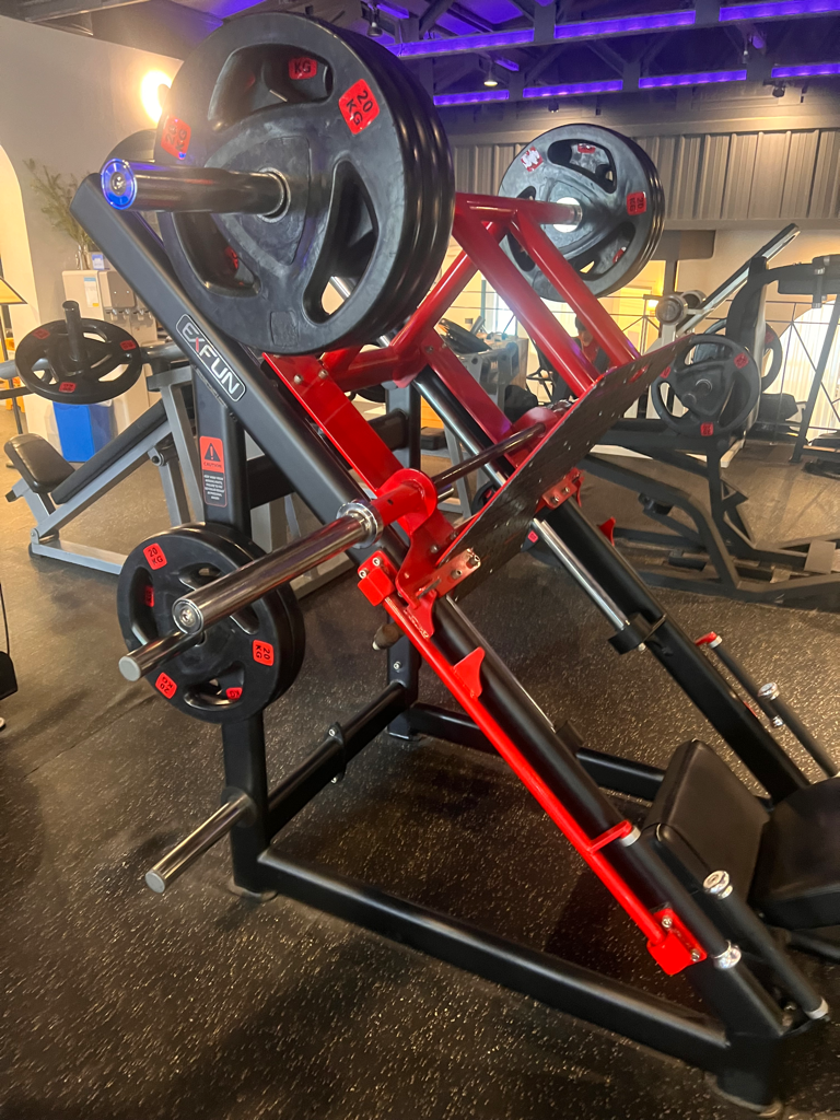 이 레그프레스 머신 중량은 어느중도로 해야하나요? 옆에 exfun 이라고 적혀있어요 인터넷 찾아보면 200은 가뿐히 넘게 한다는데 어느정도가 적당한가요?
