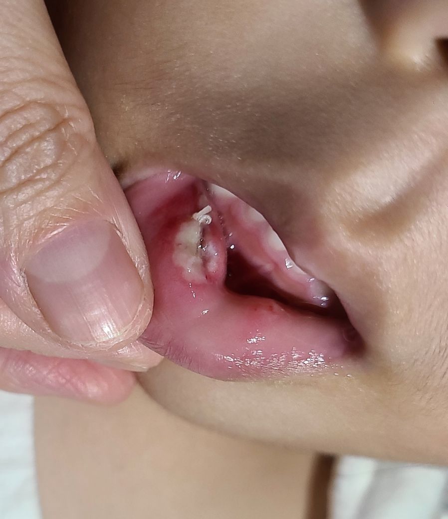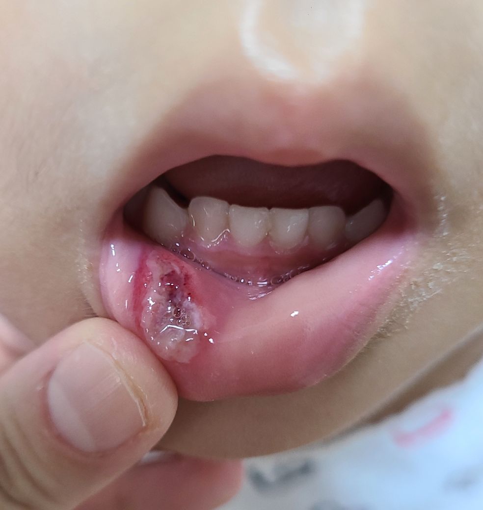 35개월 아기 의자에 부딪혀 넘어지면서 입술 안쪽이 찢어졌는데요.