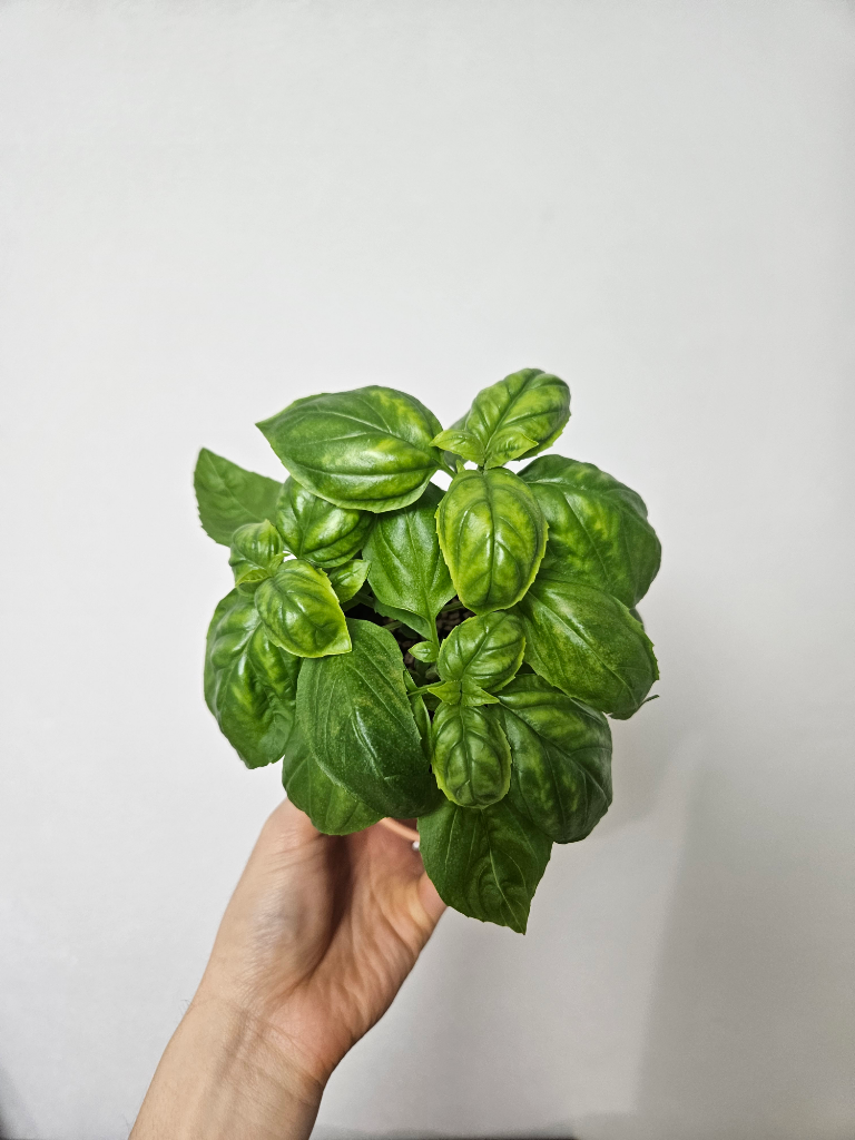 현재 바질 잎 색깔이 저렇게 노란? 연두색? 으로 얼룩이 져있습니다.