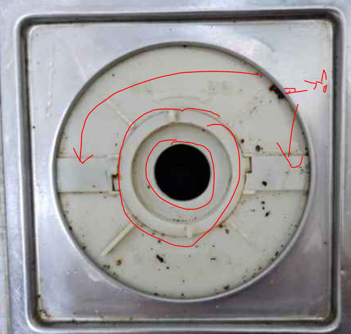 판을 제거한 후에는, 가운데 냄새, 충 올라옴 방지기를 교체할 수 있습니다. 방지기는 일반적으로 쇠로 만들어져 있으며, 중앙에 망이 있는 형태입니다. 방지기가 배수구 안으로 쏙 빠진 경우, 방지기의 망 부분을 잡고, 위로 들어올려서 빼낼 수 있습니다.
