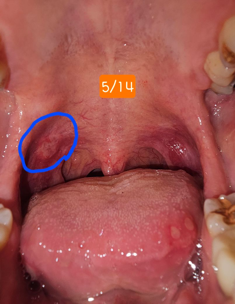 [구강악안면외과질문] 목구멍쪽에 혹같은게 있고 좁쌀같은 것들이 주변에 생겼습니다.