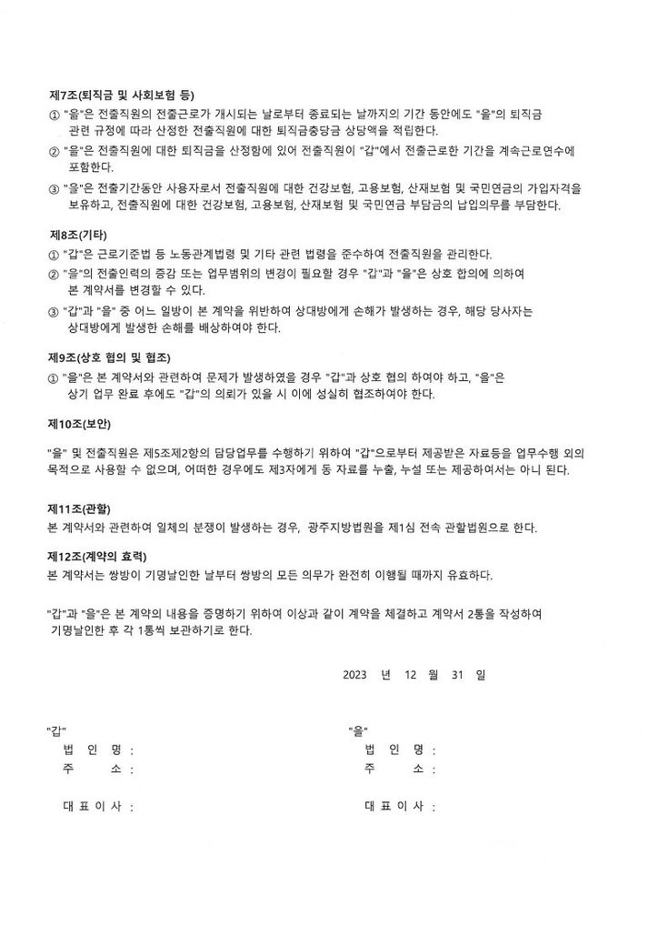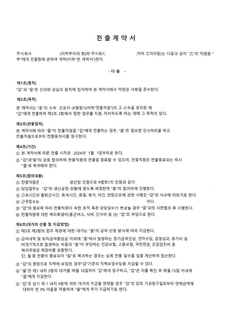 5. 전출관련으로 계약서가 있는데 노사합의서랑 전출계약서 한번 검토가능할까요?