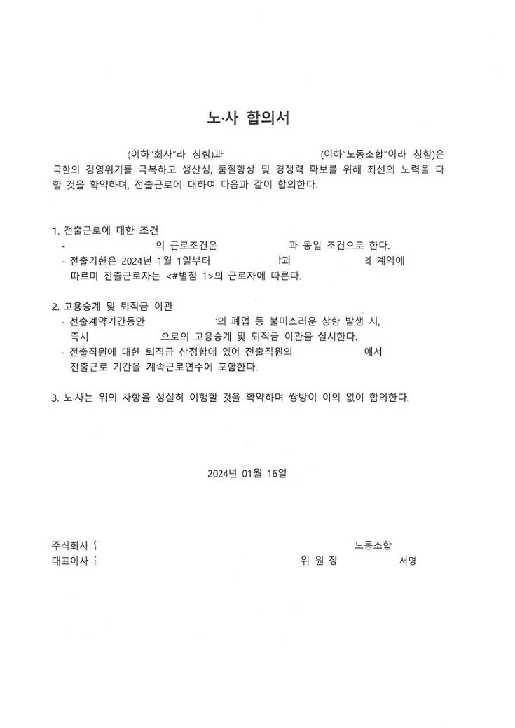 3. (A)공장과 (B)공장 노사합의서와 전출계약서를 작성은 했는데 나중에 문제가 될까요?
