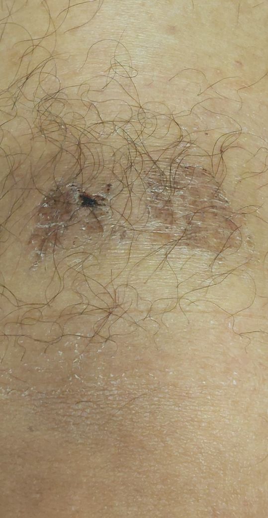 진물은 없고 얇게 딱지가 앉아있는거 같은데요.