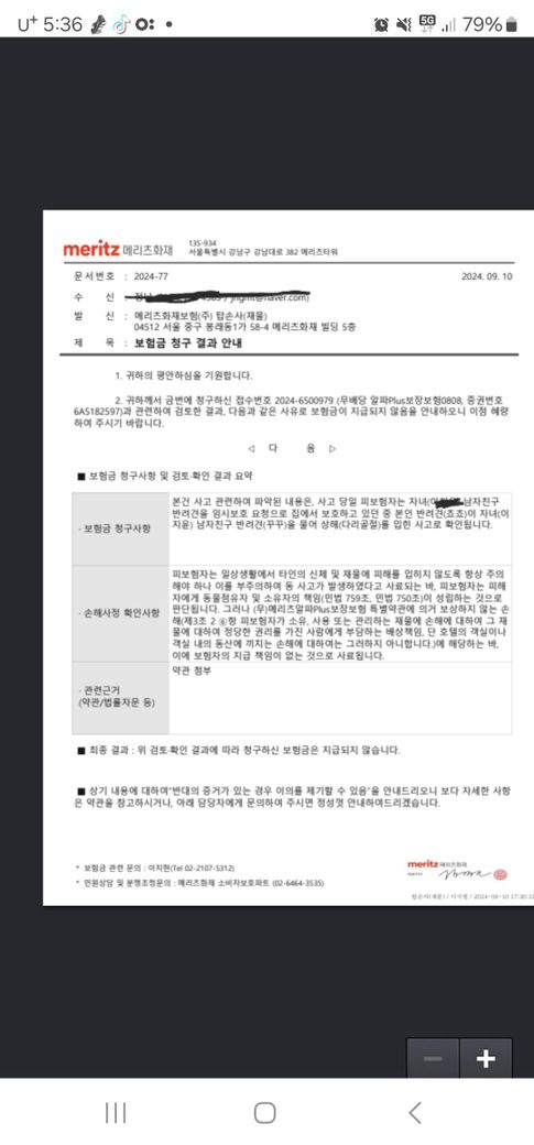 이런 상황에서 일상배상책임 보상이 아예 안되는건가요?