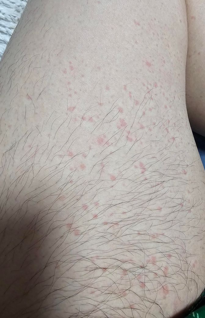 사진으로 정확한 파악은 불가하나 말씀하신 증상은 두드러기(urticaria) 일 가능성이 높습니다. 두드러기는 피부에 붉은 반점이나 발진, 혹은 부풀어 오른 상태의 발진이 갑자기 나타나는 증상입니다. 간지러움 없이 붉은 반점이 올라왔다가 항히스타민제나 스테로이드약을 먹으면 빠르게 사라지는 점은 알레르기성 반응일 가능성이 크죠
