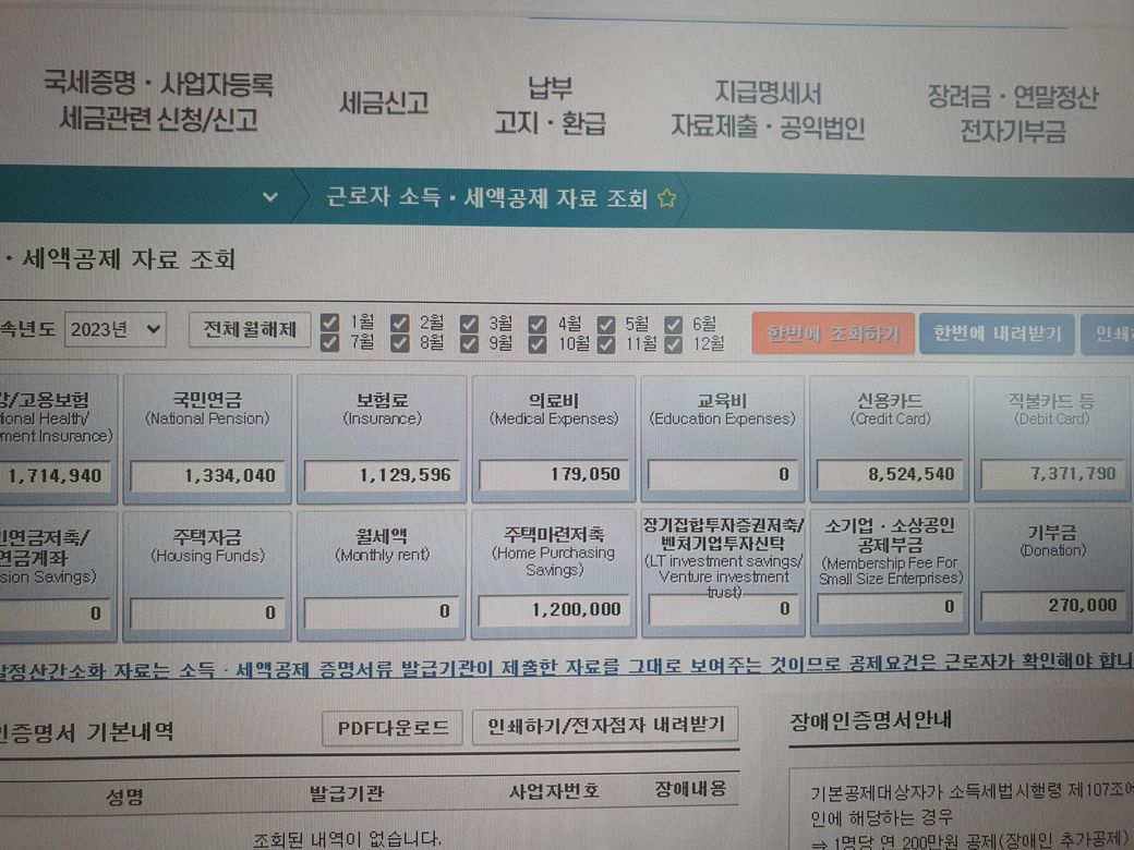 직불카드 사용금액이 있으니 약 225만원 소득공제 됩니다.