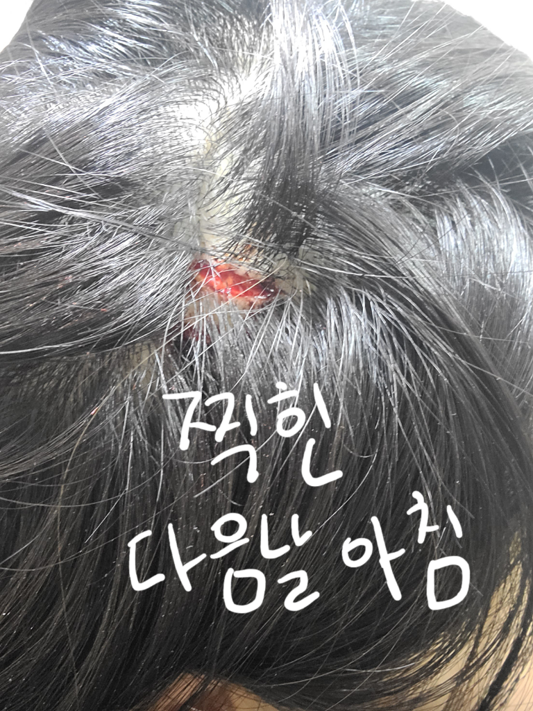 머리가 찢어진 상처이지만 보통 1주일이면 호전이 됩니다.
