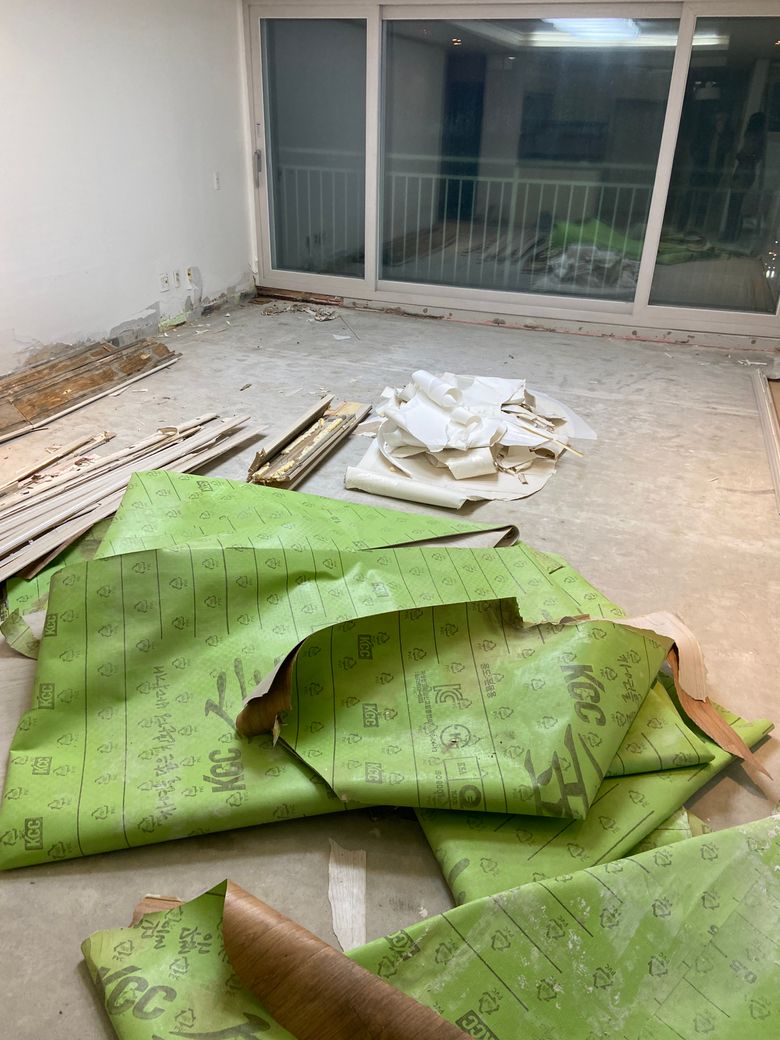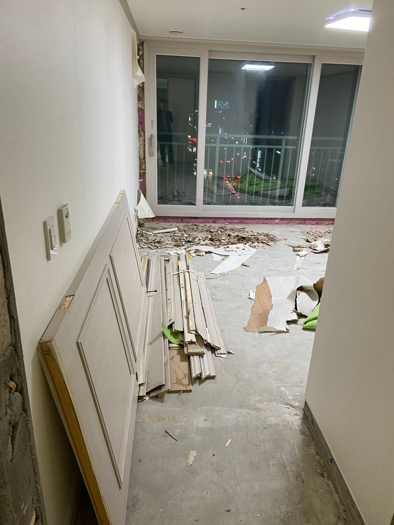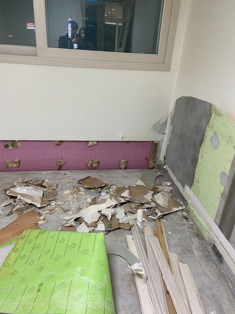 10월18일 저희와 협의없이 매도인의 독단으로 집에 들어와 걸레받이, 내부 문 3군데, 벽지, 화장실 타일을 철거하여 집안을 난장판으로 만들어 놓았고, 사실 확인 즉시 사진과 영상 촬영 후 협의되지 않은 시공이 되어있어 부당하다고 부동산과 매도인측에 전달하였습니다