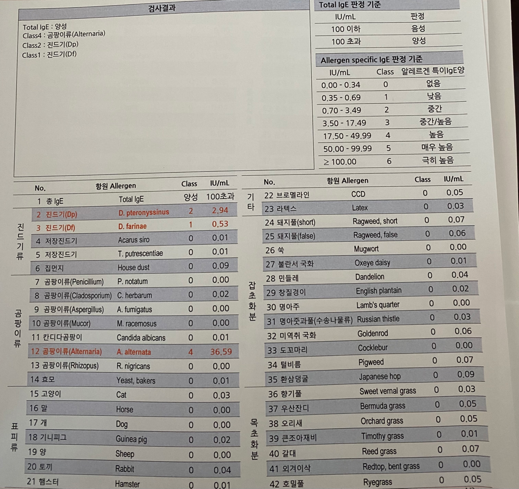 사진의 소견은 진드기 및 곰팡이류에 대하여 알러지 양성 반응이 나왔다는 검사 결과지일 뿐입니다. 해당 결과지만 가지고 질문자님의 비염 증상이 알러지에 의한 것이라고 단언할 수는 없습니다.