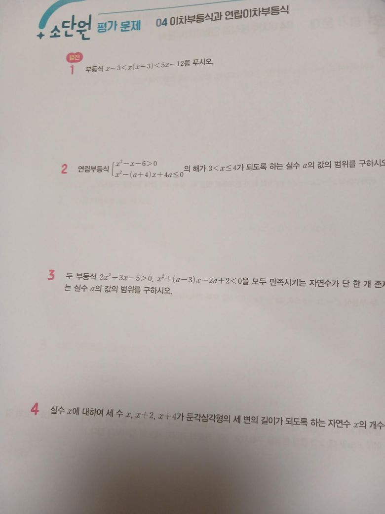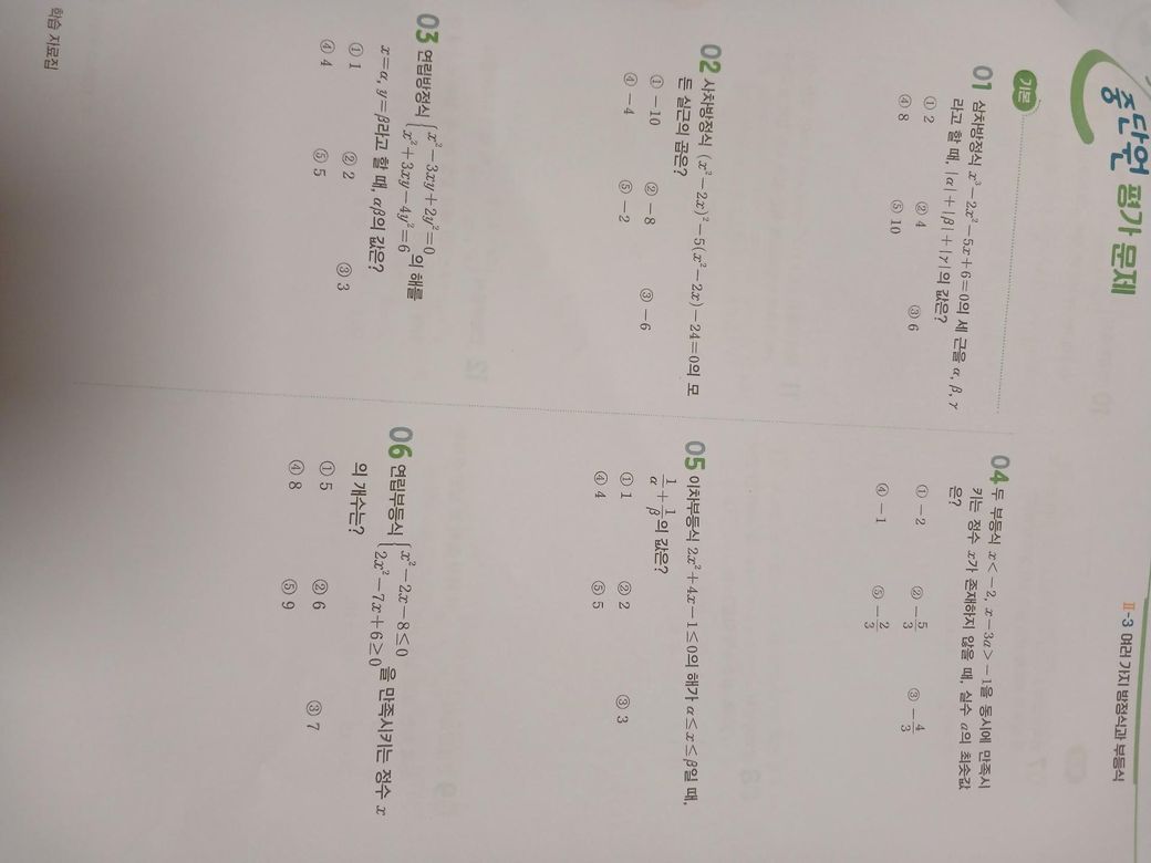 수학선생님께서 숙제로 프린트 주셨는데 답지를 잃어버렸어요 근데 문제는 책 이름을 알아야 인터넷으로라도 답지를 찾아볼텐데 제가 산 책이 아니고 프린트 형식으로 된 거라서 책 이름을 모르겠어요 맨 밑에 학습 자료집이라고 써있는걸 보니까 교과서 자료집? 그런거 같긴 한데 혹시나 책 제목 아시는분 계신가요? 프린트 몇장 사진 찍어드릴게요