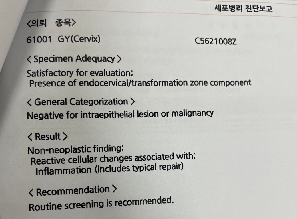 산부인과 검사지 해석 좀 부탁드립니다.