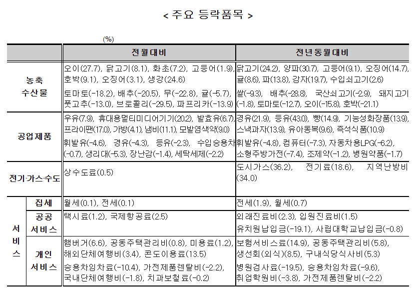 아무래도 가장 높은 물가상승률이 있던 품목은
