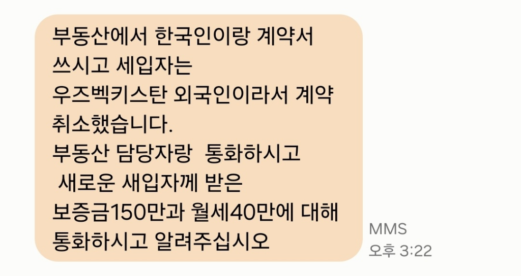 보증금까지 다받고 나왔는데 임대인쪽에서 외국이라고 파기를 하시는건가요