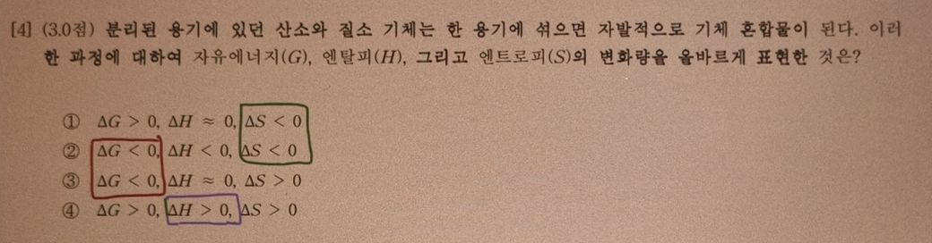 이경우 델타 G가 음수가 되려면 필연적으로 델타 H가 음수가 되어야 합니다.