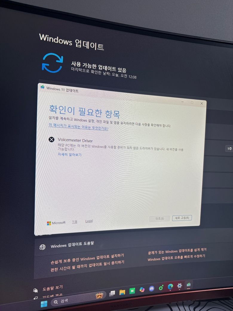 보니까 Voicemeeter Driver가 충돌하는 것 같은데, 이걸 찾아서 제거한 뒤 다시 업데이트 해보시겠어요?