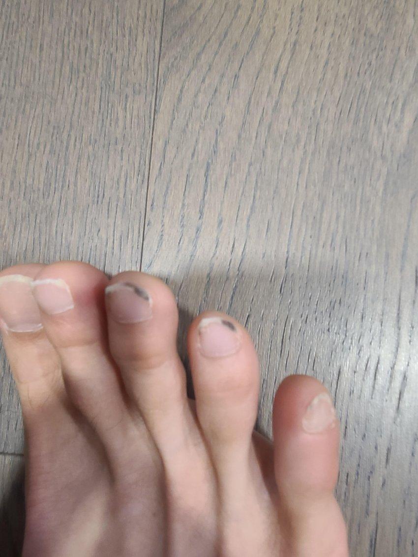 사진처럼 발톱 깎아도 계속 똑같은 자리에 검은색이 생기는데 무좀일까요 발은 맨날 씻어서 때 같지는 않은데 정체가 뭔가요 병원 갈 정도인가요?