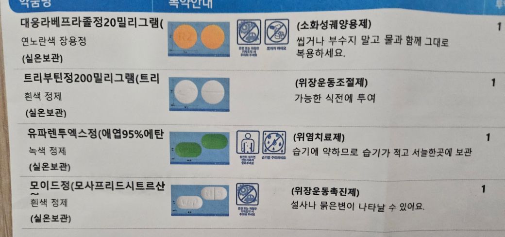 제산제는 아니며 위산을 덜 나오게하는 약과 위장운동촉진제, 위점막보호제 등의 약이 처방되어있습니다.