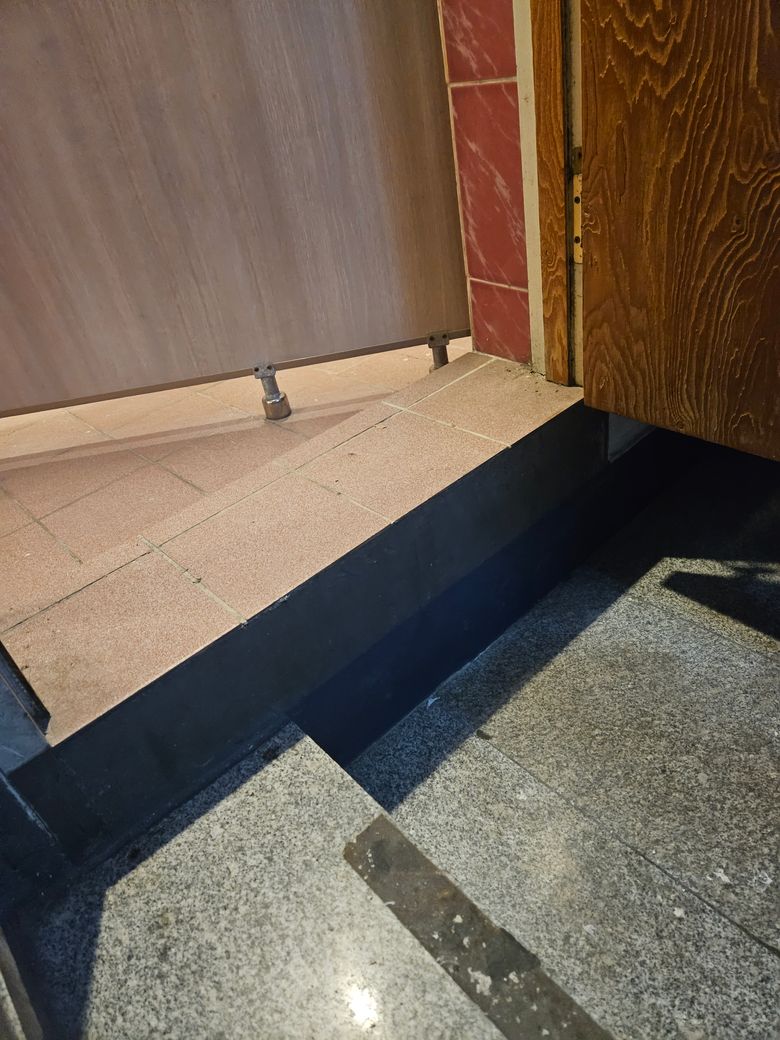 사진과 같은 화장실 입구인데 들어갈 때는 별생각 없이 들어갔다가 나올 때 심하게 넘어졌어요