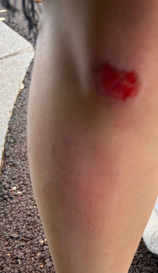 어제 아스팔트에서 넘어져서 무릎에 심한 상처가 났습니다
