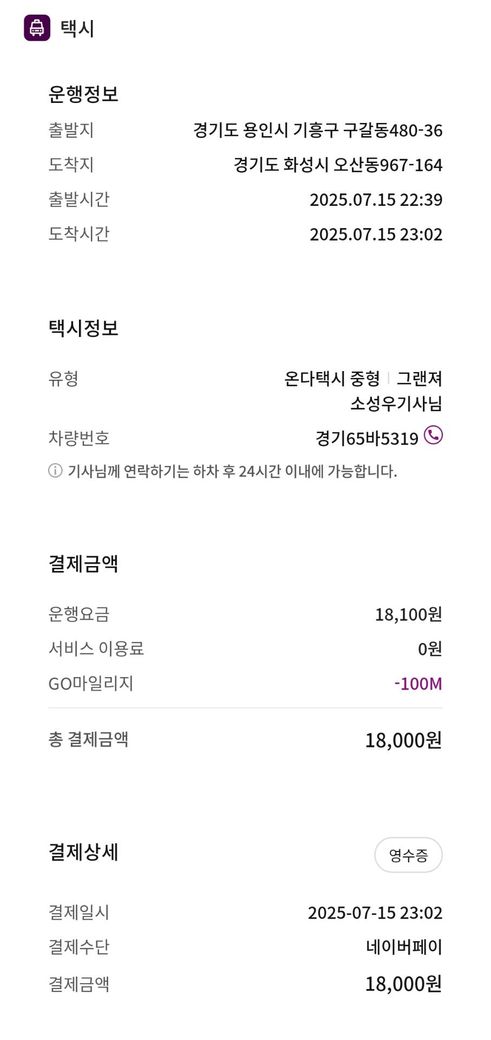 저는 그제야 네이버 지도 어플을 통해 이미 2대가 초당고등학교를 지나 구성역 방향으로 가고 있음을 확인하였으며 버스 이용 시 더 이상 동탄역 srt시간표에 맞출 수 없음을 확인해 강제로 택시에 탑승하게 되었습니다. 억울하게 택시비 18,100원을 지불하게 되는 상황이었습니다.