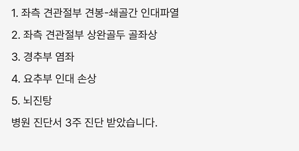 수리비는 220만원 정도 나왔습니다. 진단명은 밑에 있습니다.