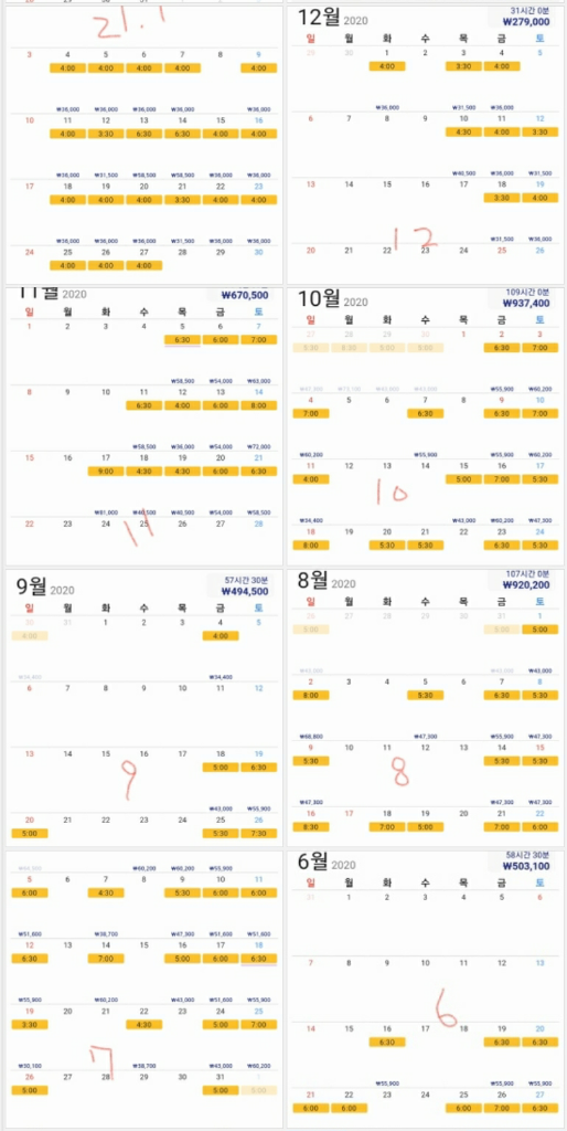 현재 사진만으로는 정확한 정보가 파악이 어렵지만, 사진을 통해서 보았을 때는 퇴직금 수급이 어려울 것으로 보입니다. 총 근무기간과 월별/주별 소정근로시간의 정확한 파악이 필요합니다.