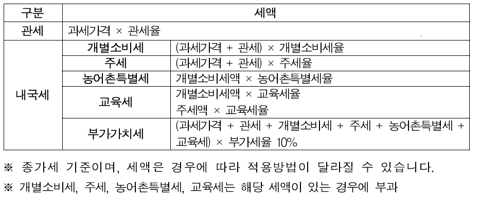 * 상기 세액 예시는 감면, FTA 적용여부에 따라 달라질 수 있으니 사전에 거래 관세사의 자문을 받아보시기를 바랍니다.