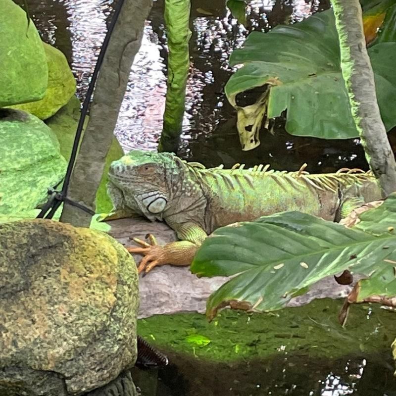 녹색이구아나는 중남미의 열대우림에 서식하는 초식성 동물로 나무 위에서 주로 생활하고, 위험에 처하거나 열을 식혀야 할 때 물속으로 뛰어드는 편입니다. 그래서 수영을 매우 잘하고 물속에서 몇 분 동안 숨도 참을 수 있습니다.