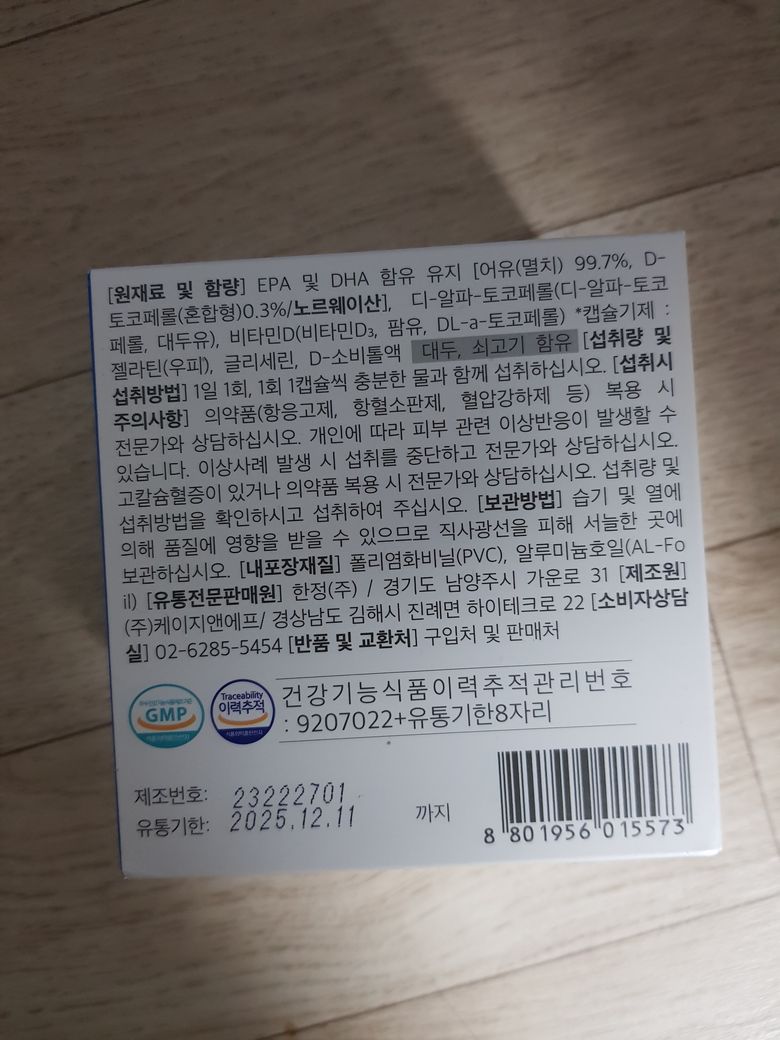 오메가 함량은 드시는데 문제가 없으나 비타민d의 함량이 조금 높은 편입니다.