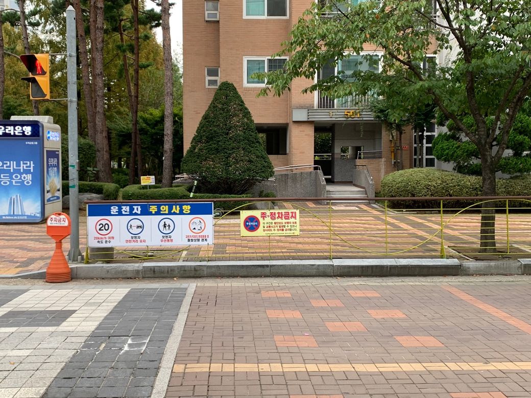 오후1시반경에 아파트 단지내 편의점가려고 사진 첫번째 주정차금지 표지판 앞에 에 잠깐 차를 세워두려고 인도쪽으로 붙였는데, 보도석이 튀어나와있어서 타이어가 찢어지고 휠이 망가졌습니다..이런일로 관리사무소쪽으로 말하려고 하는데 아파트 보험으로 처리 가능할까요? 우회전하는 차들도 많은데, 보도석이 저러는건 정말 이해할 수 없습니다..