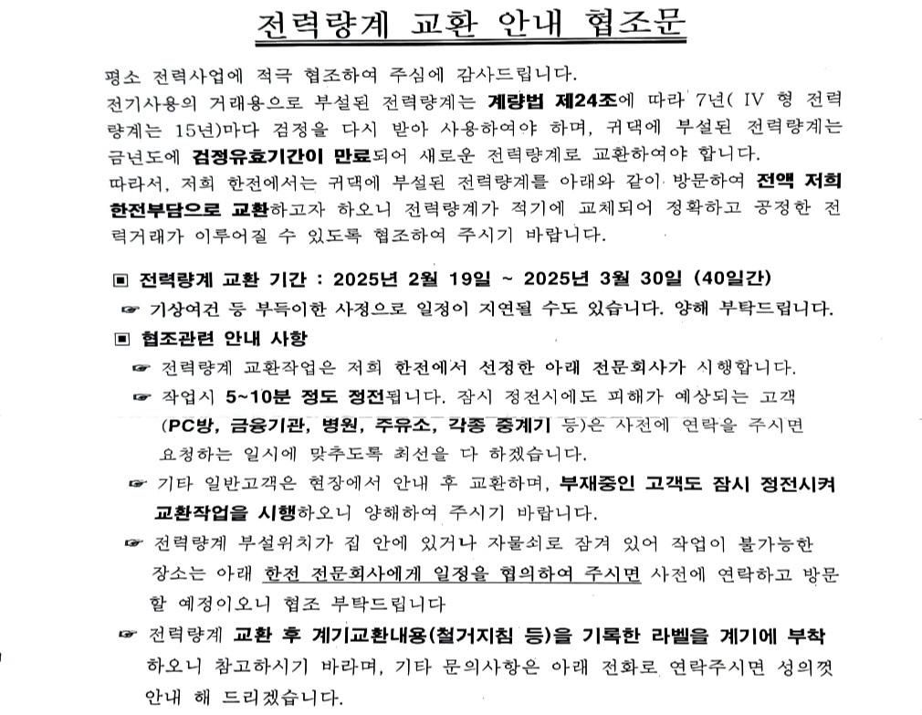 한전 전력량계 무료교환 안내문 의무인가요?