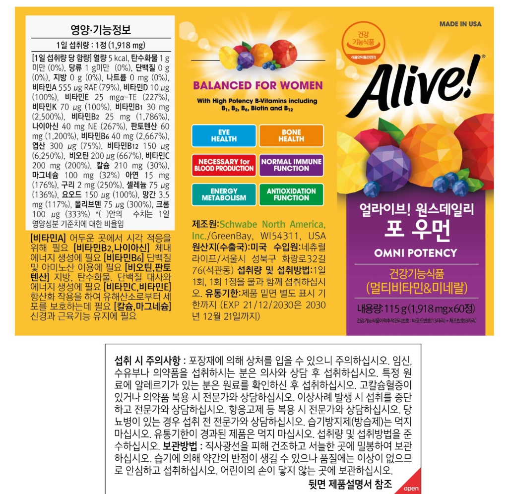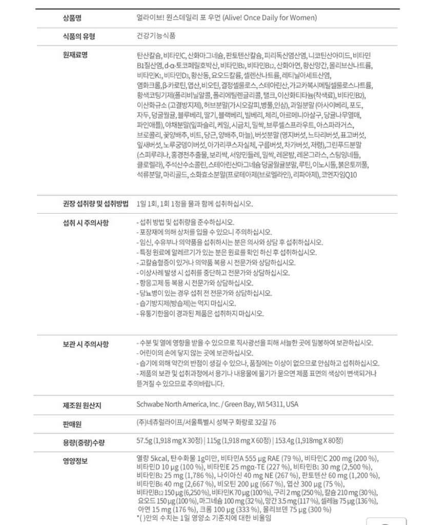 얼라이브 원스데일리 포 우먼 멀티 비타민을 사서 점심 식후에 모바렌이랑 같이 섭취하려고 합니다