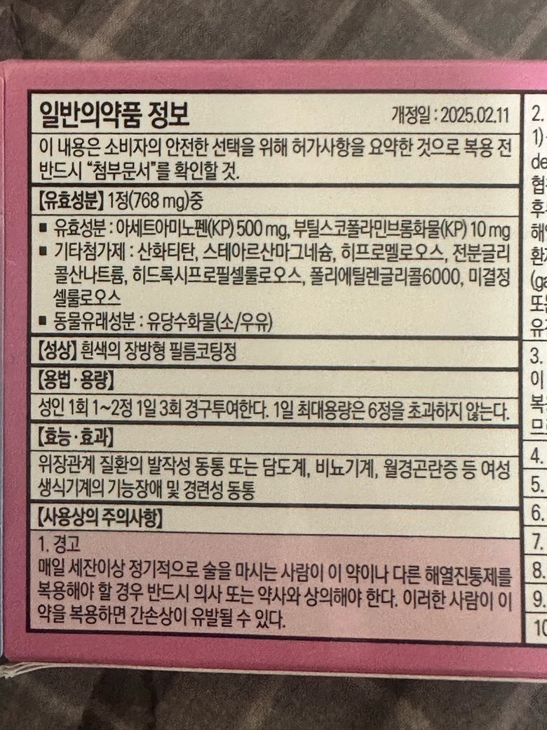 진경제 들어간 게 생리통에 효과가 좋기 때문에, 아마 괜찮으실 것 같아요.