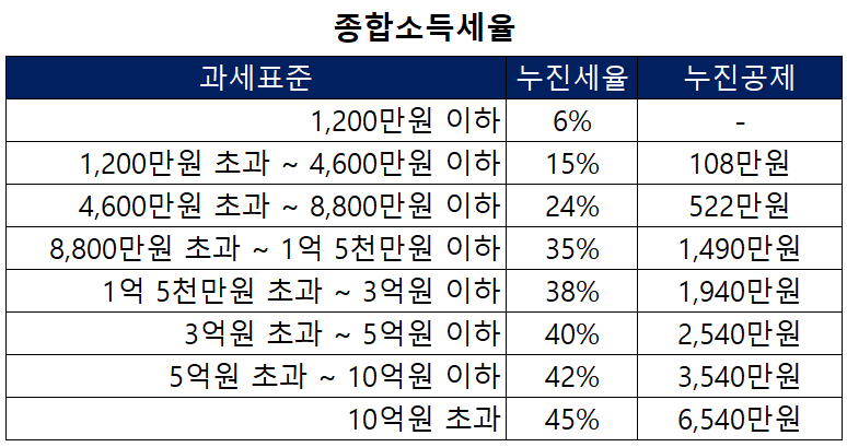 종합소득세율이 과세표준에 따라 세율이 정해진다고 들었습니다.