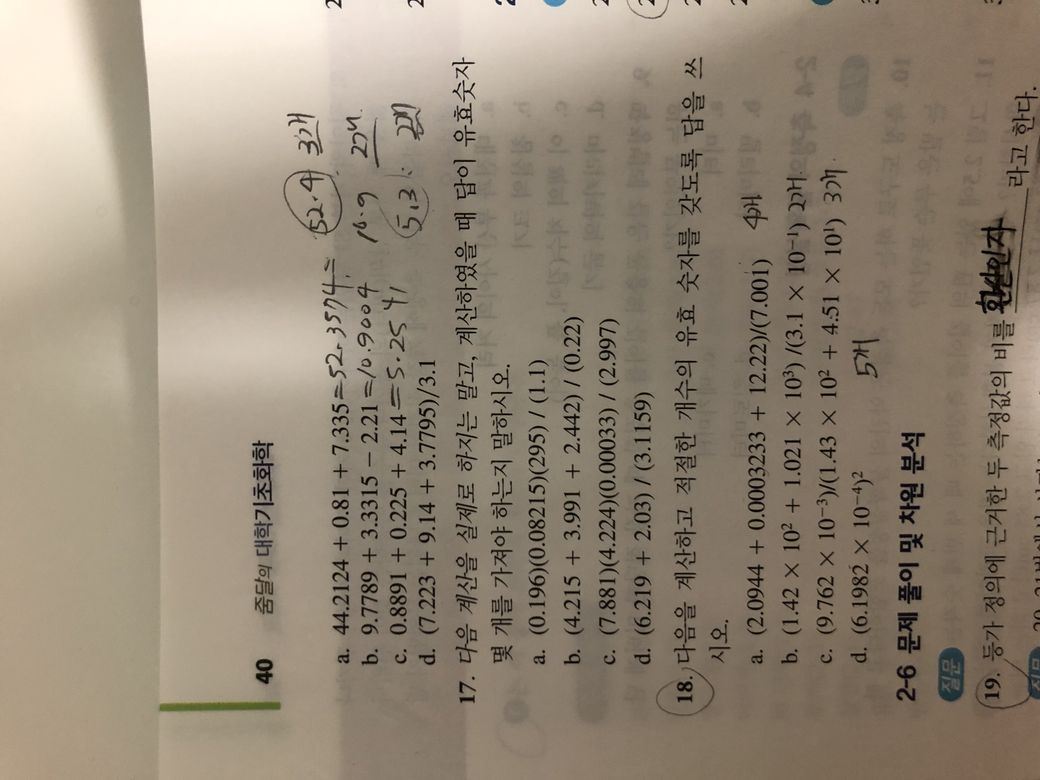 계산을 해봐도 답지가 없어서 해결방안을 못찾고 있어요 위에 있는 16번과 18번 답변 부탁드리겠습니다