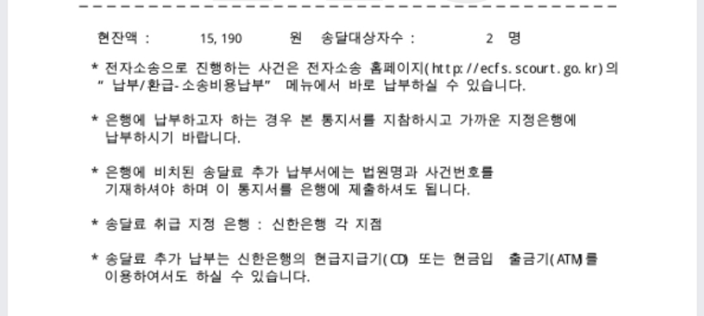 지금 전자 민사소송사건이 남부지방법원에서 광명시 법원으로 이관됐는데 추납통지서가 날라왔습니다. 근데 원고가 저 혼자 (전자소송으로 진행) 피고가 한명인데 왜 사진처럼 송달대상자수가 2명인가요?? 전자소송은 원고 한테 전자로 오니 송달대상자수가 1명 아닌가요? 다른 블로그에 추납 통지서 보면 다들 1명이던데 왜 2명이죠? 우편이 따로 저에게 오는걸까용?