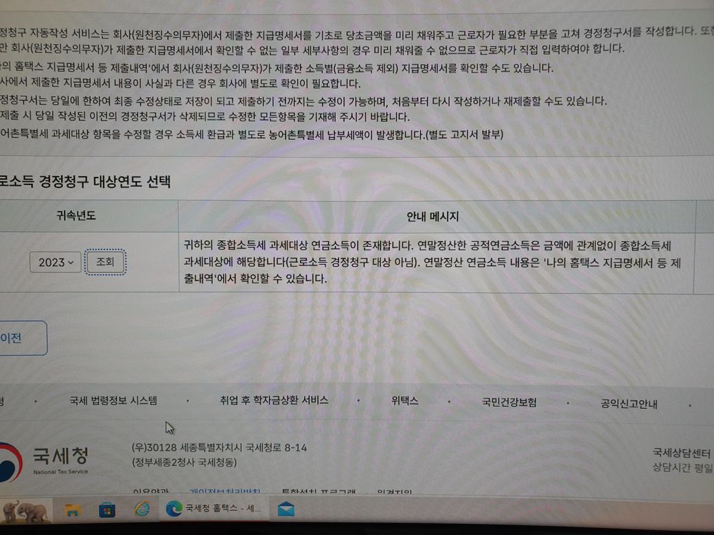 아버지가 근로자이고 장애인이신데 연말정산할때 장애여부는 선택에서 빼놨던걸로 기억하는데요 경정청구 라는걸 알게되서 혹시 환급받을게있을까 싶어서 종합소득세-근로소득-경정청구 해보려니까 안되더라고요 과세대상 연금소득이 존재한다고하며 또 원클릭 환급신고도 눌러보니까 환급대상이 아니라고하는데요 환급받을게 아예 없어서 안되는건가요?