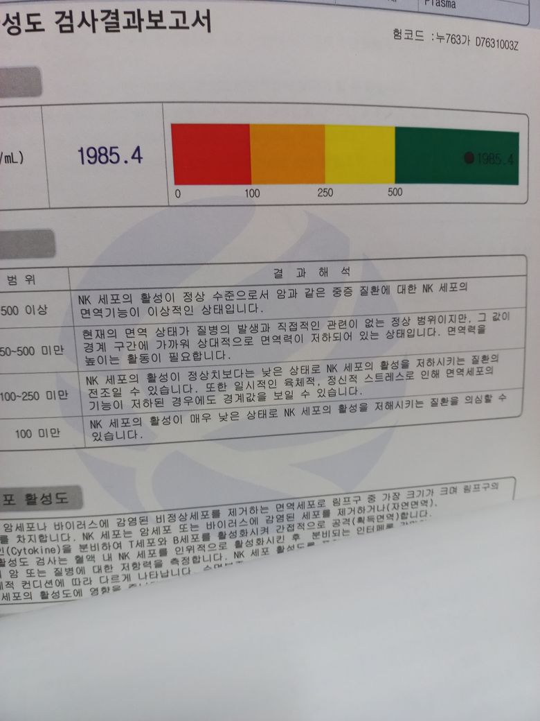 91년생남자인데 nk세포활성검사에서 1985가 나왔는데 제나이에 3000인사람도 있다는데 그럼 그런분비해 낮아서 예후가 안좋은건지 궁금합
