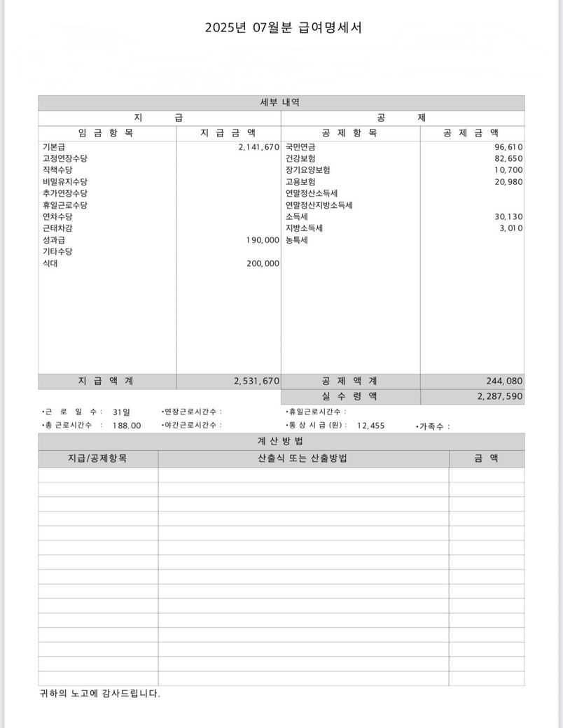 그리고 제 최근 3개월 급여명세서를 첨부드리니 실업급여를 대략 얼마 받을 수 있는지도 계산해주시면 감사하겠습니다!
