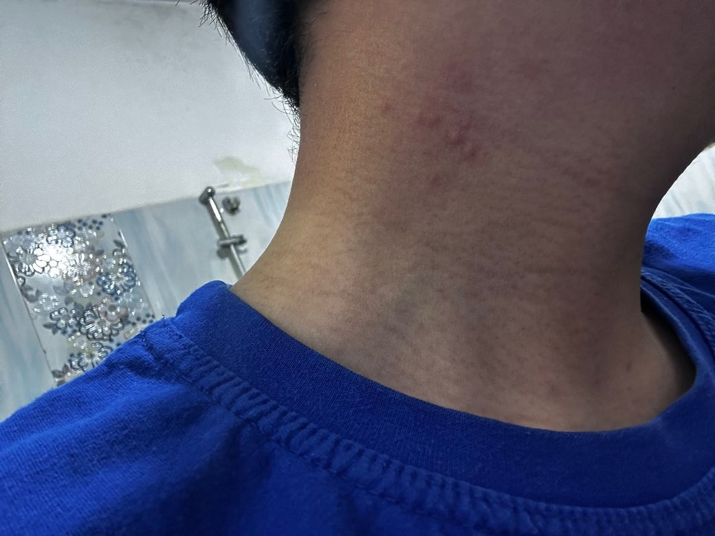 최근 해외 여행에 있는데 목이 간지러워서 보니 두드러기가 사진과 같이 생겼습니다.