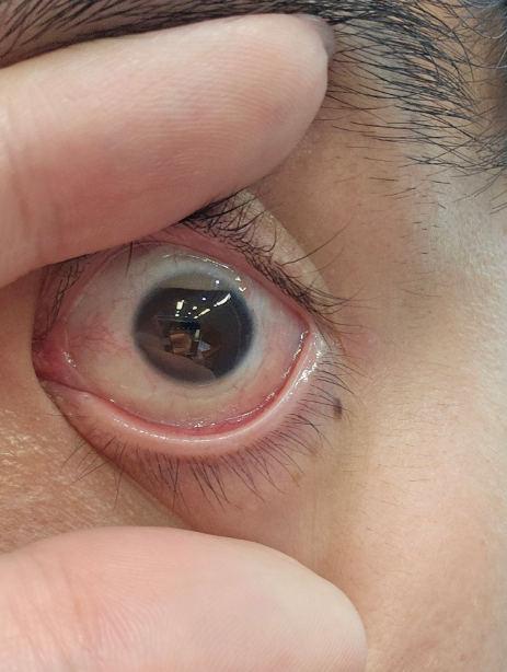 오늘보니 눈이 이상해서 촬영해봤습니다. 눈위에 검은자가 가려지는거같은데 이건 왜이런건가요 ㅠㅠ 무서워요...