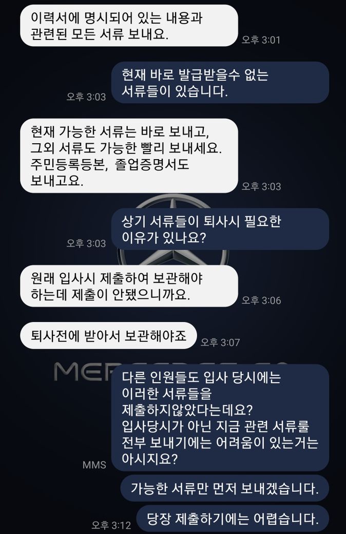 퇴사 전 무리한 서류 요구를 하고 있습니다.